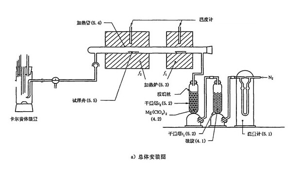 在105ºC的加熱爐內(nèi),在干燥的氮?dú)鈿夥罩屑訜犷A(yù)干燥試樣,使吸濕水釋放出來(lái)。繼續(xù)在另一950ºC的爐內(nèi)加熱,用乙二醇-甲醇混合液收集釋放的化合水。