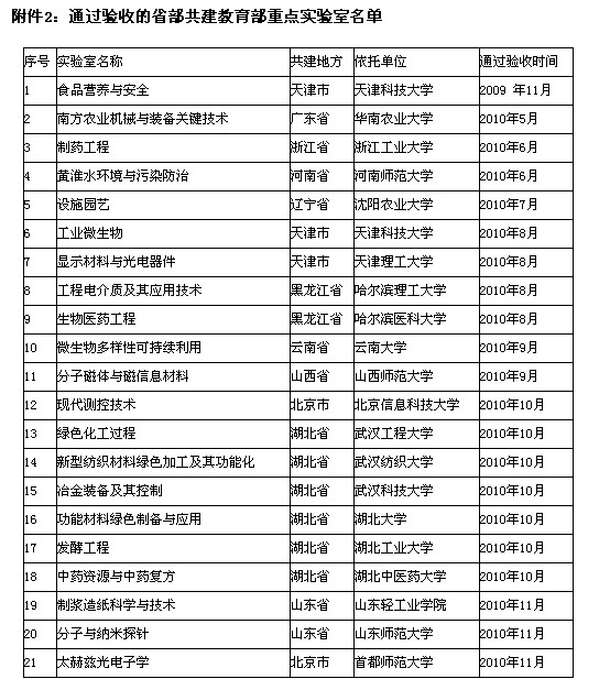 附件1:通過驗收的教育部重點實驗室名單